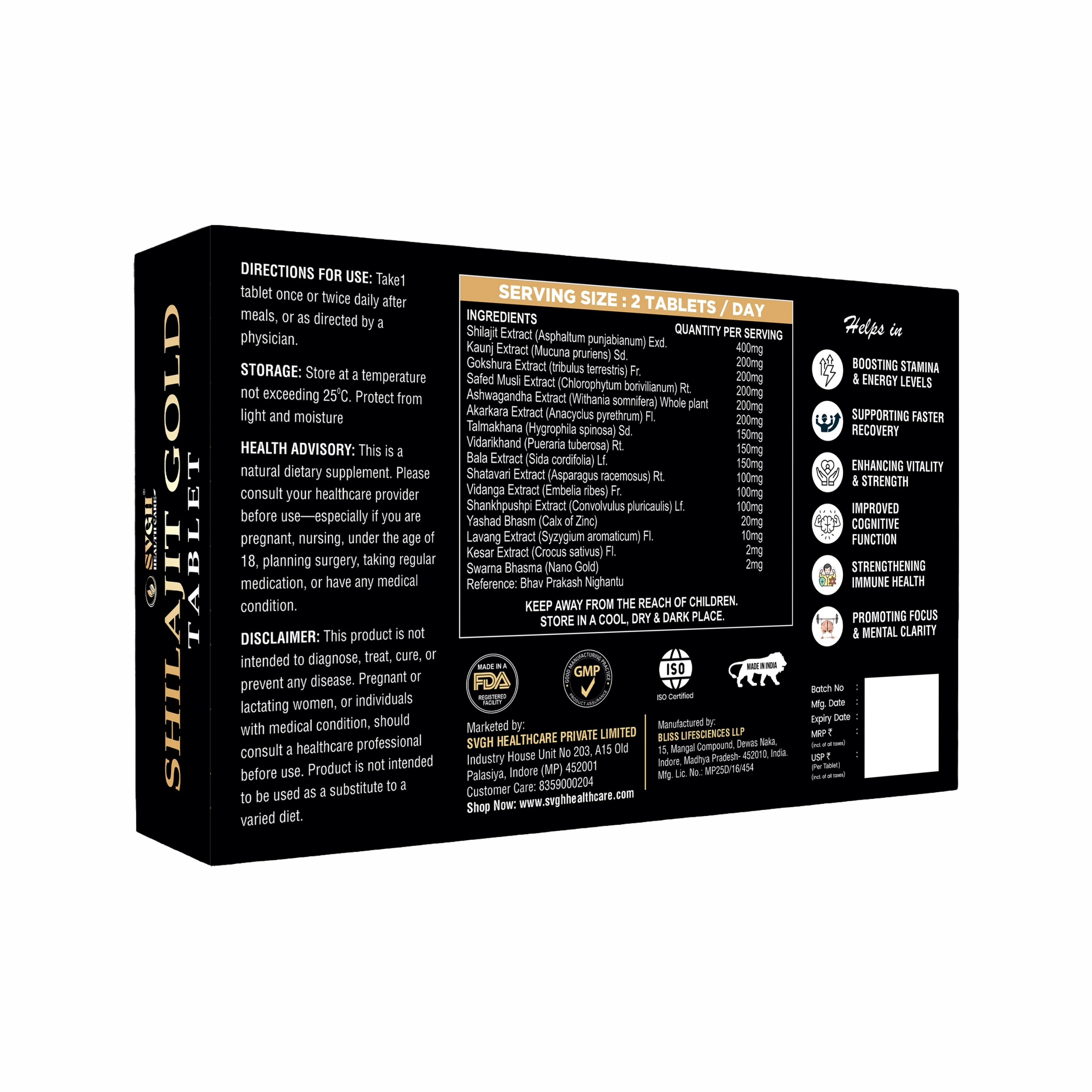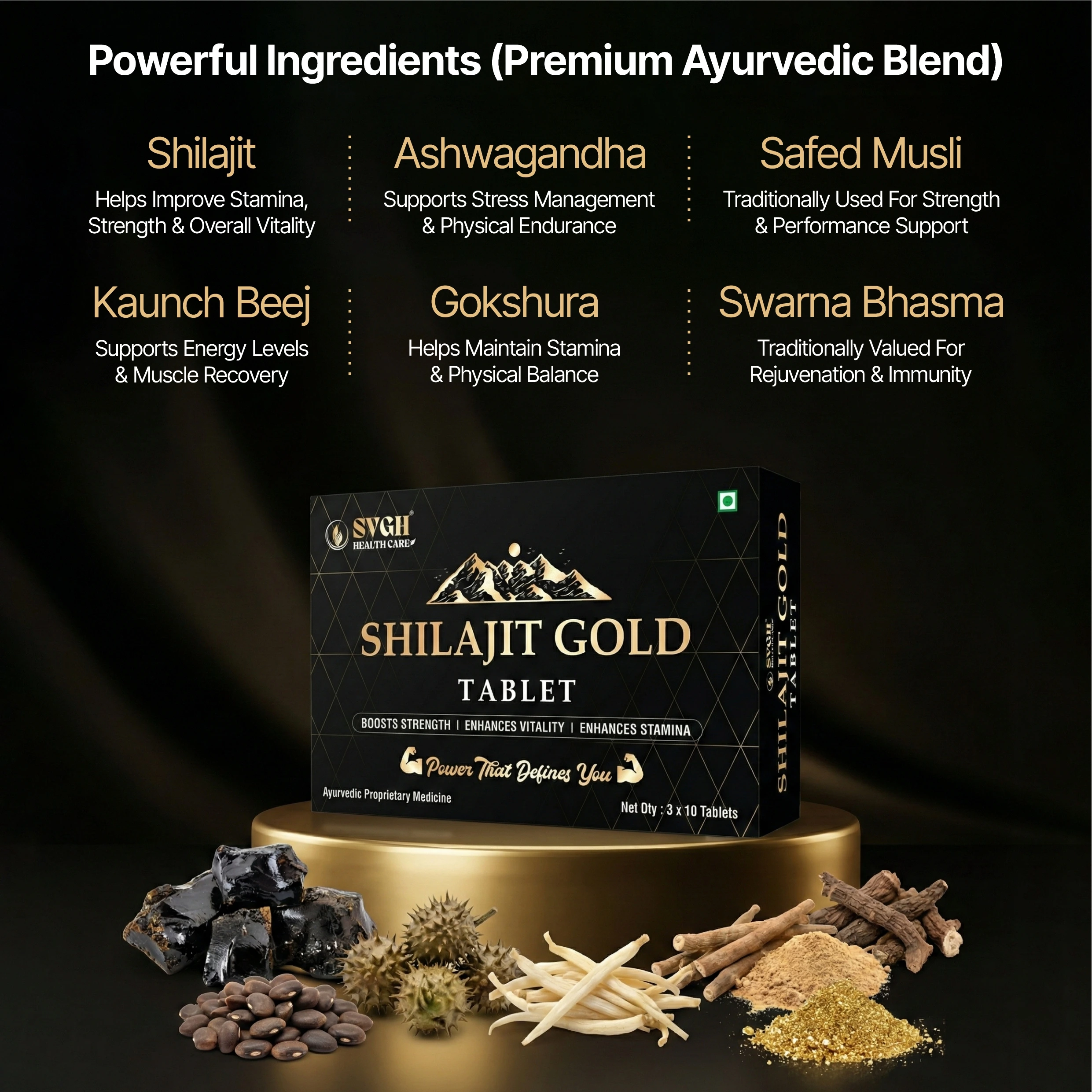 Premium SVGH Herbal Shilajit Gold Tablets for Daily Wellness